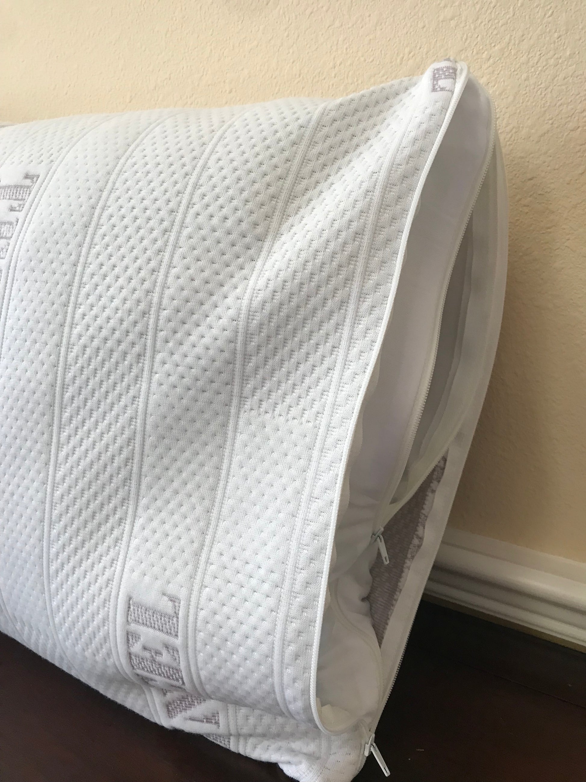 - ZIPPERED COOLING PILLOW COVERS - A cooling pillow cover that is 40% Tencel and 60% polyester composition. Our premium cooling tech fabric ensure your pillow stays cool and luxurious throughout the night. Cover is a Hypoallergenic pillow cover and Dust Mite Resistant. Each to Care for and Machine Washable. High quality bamboo fabric.