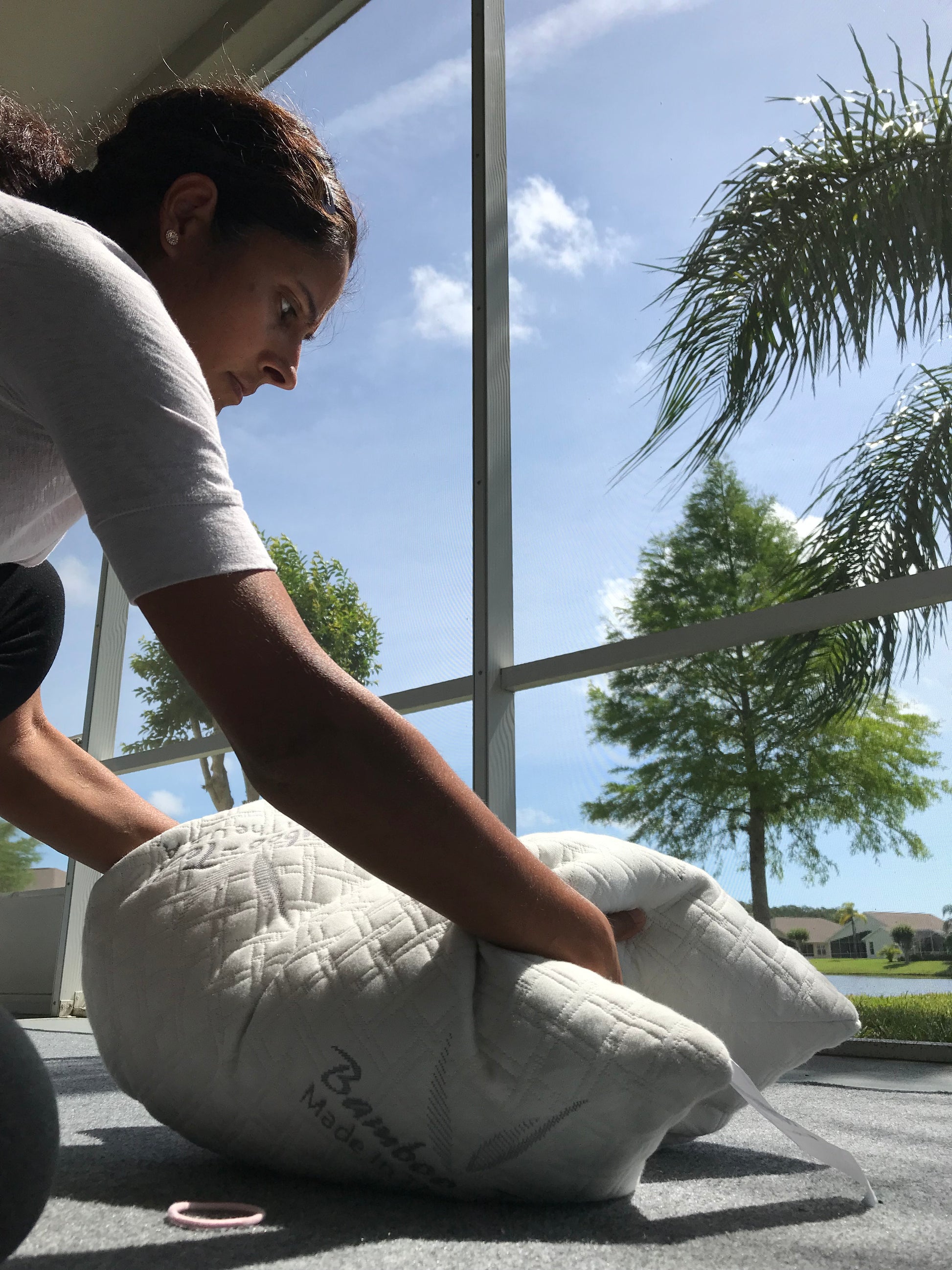 "I was a little skeptical when I first opened the package - it was flat like a magic carpet then it fluffed out into a large pillow and along came my husband the pillow thief! He says it sleeps satisfactory and it’s made in the USA which makes him feel even better when he lays his head on it!" - Lucy